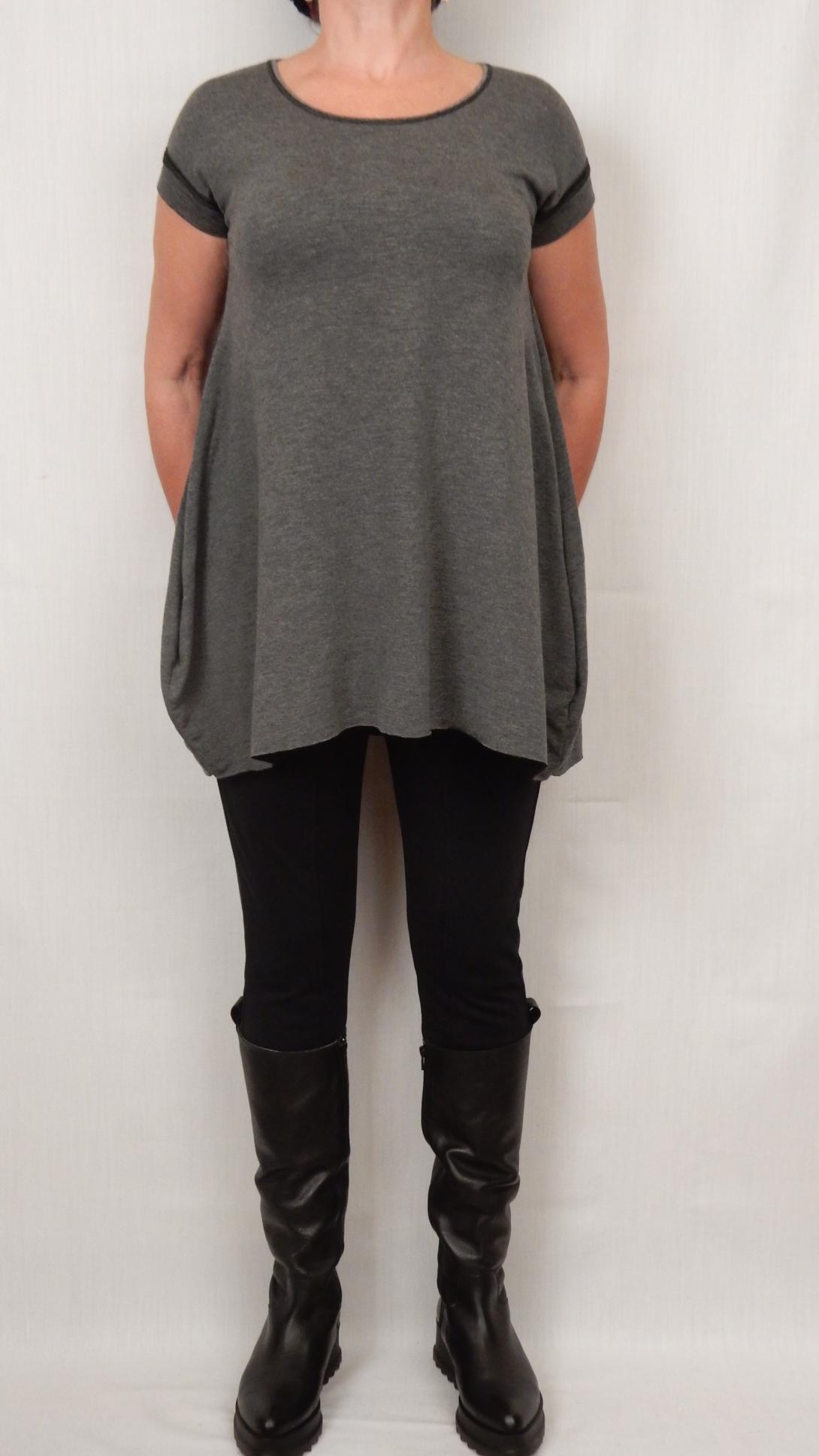 Туника гафитового цвета. Слегка трапеция. Скрывает бёдра.