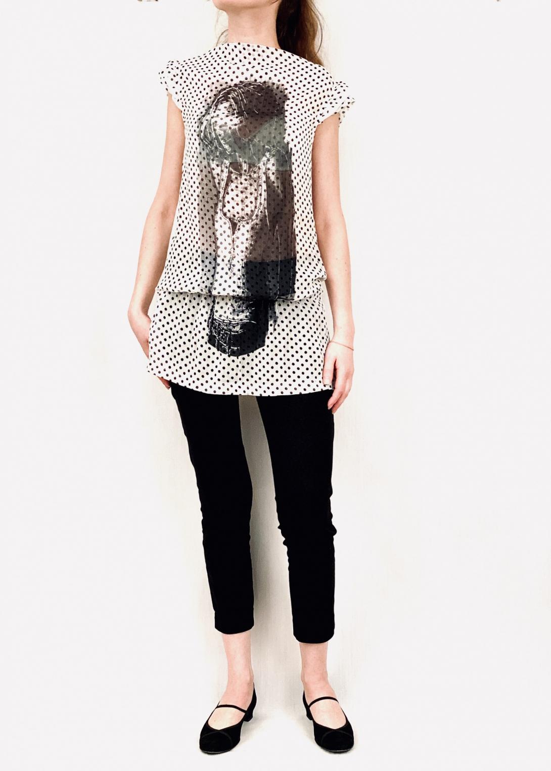 Комбинированная туника с принтом в мелкий горох с принтом от итальянского бренда Please.