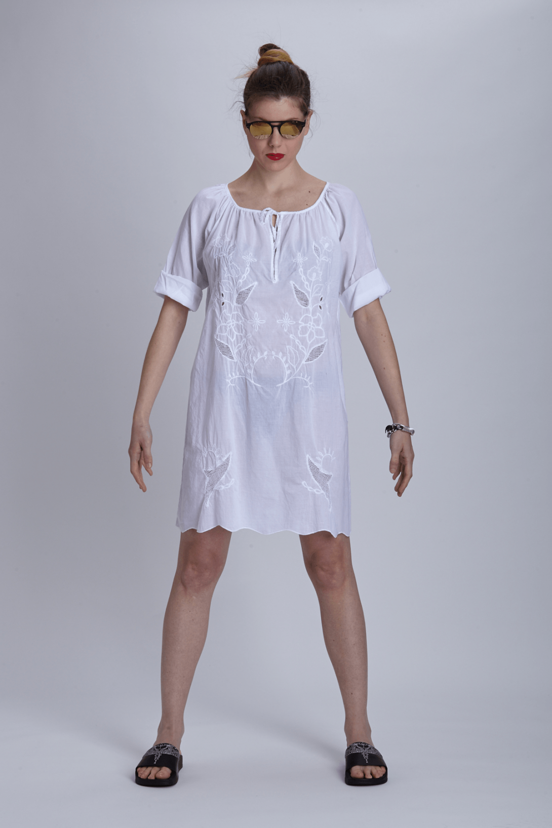 Белоснежная туника с красивой вышивкой. Эта вещь идеально подходит для отдыха у моря.
