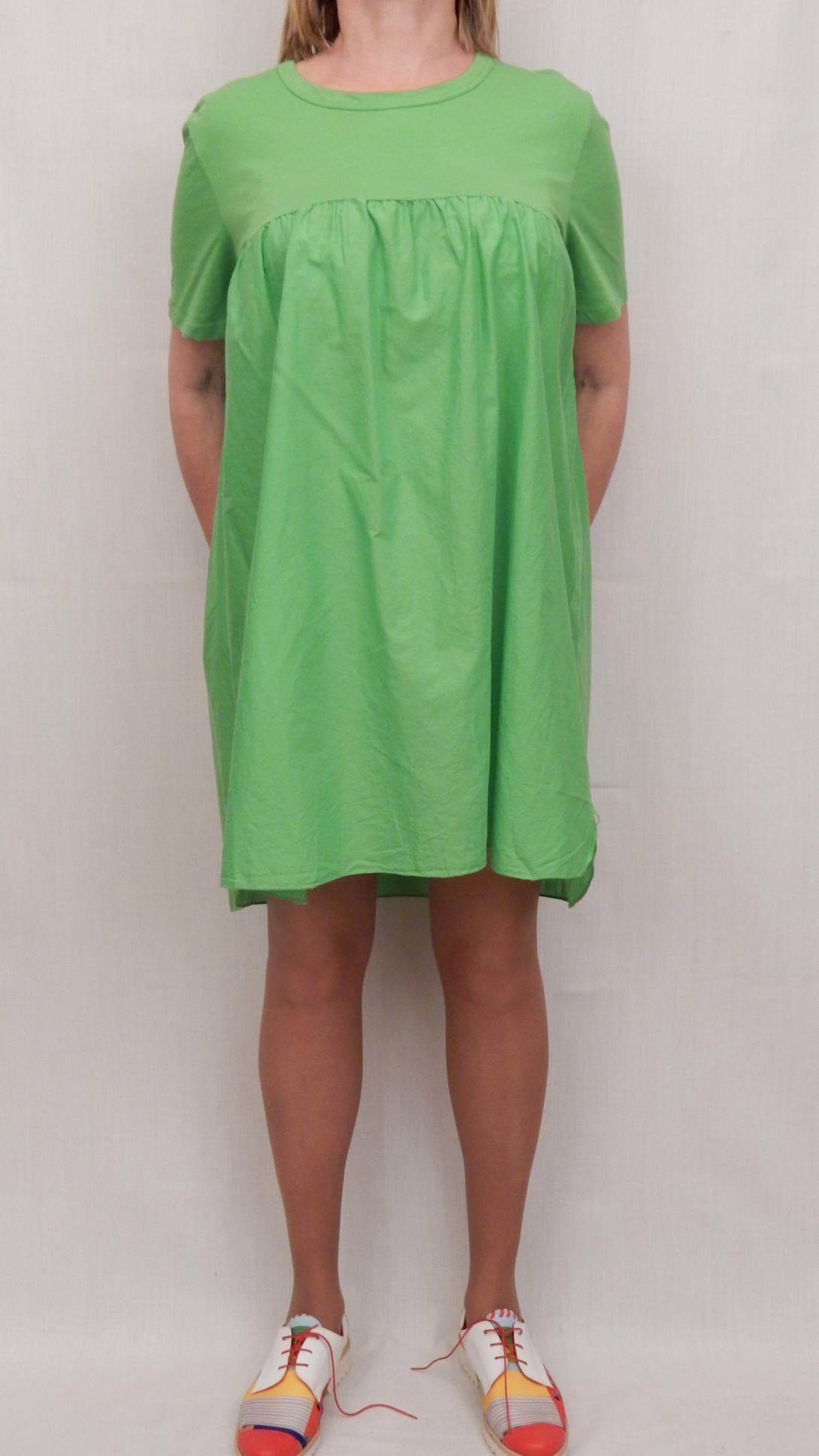 Туника из хлопка, комбинированная трикотажем позволяет чувствовать себя максимально комфортно.Платье можно носить с поясом, что бы подчеркнуть талию.Платье с коротким рукавом яркого активного цвета пробуждающей молодой листвы.Такая одежда идеально подойдёт для отдыха в тёплых странах и у моря.