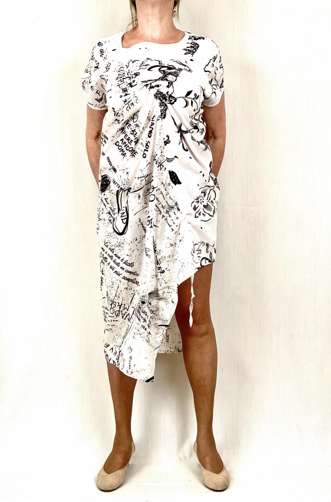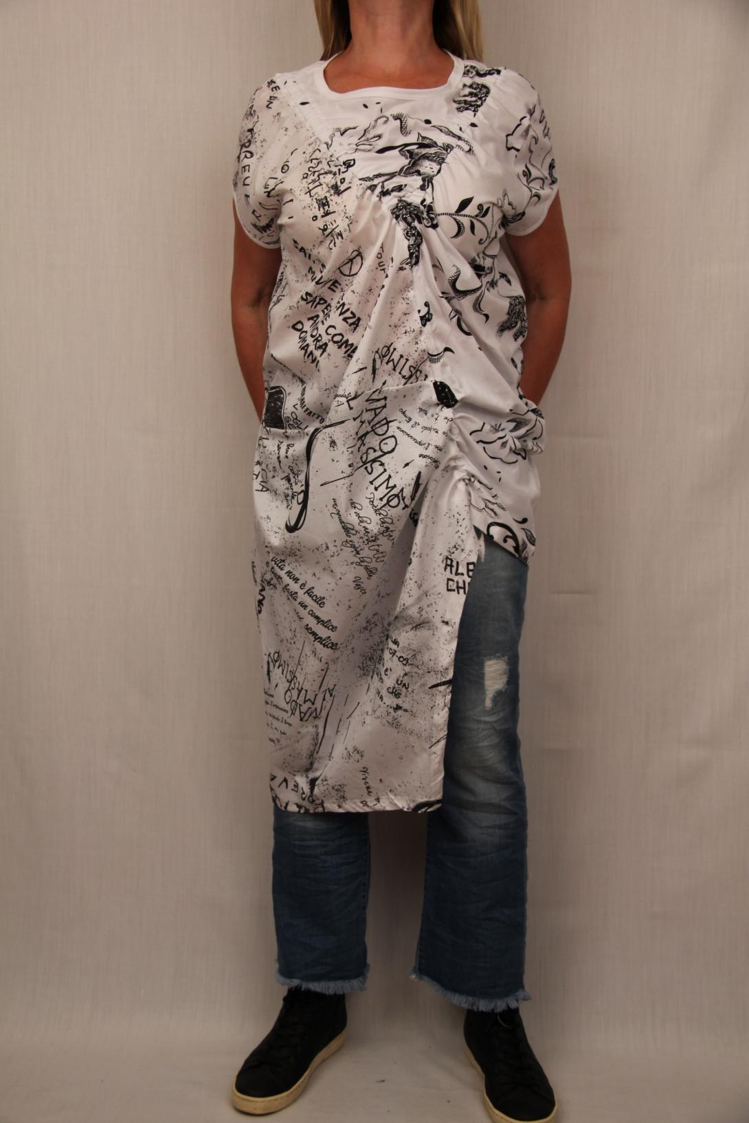 Шикарная ассиметричная туника в бело-чёрных тонах. Тунику можно трансформировать подтягивая или ослабляя кулиску. Эксклюзивная модель.