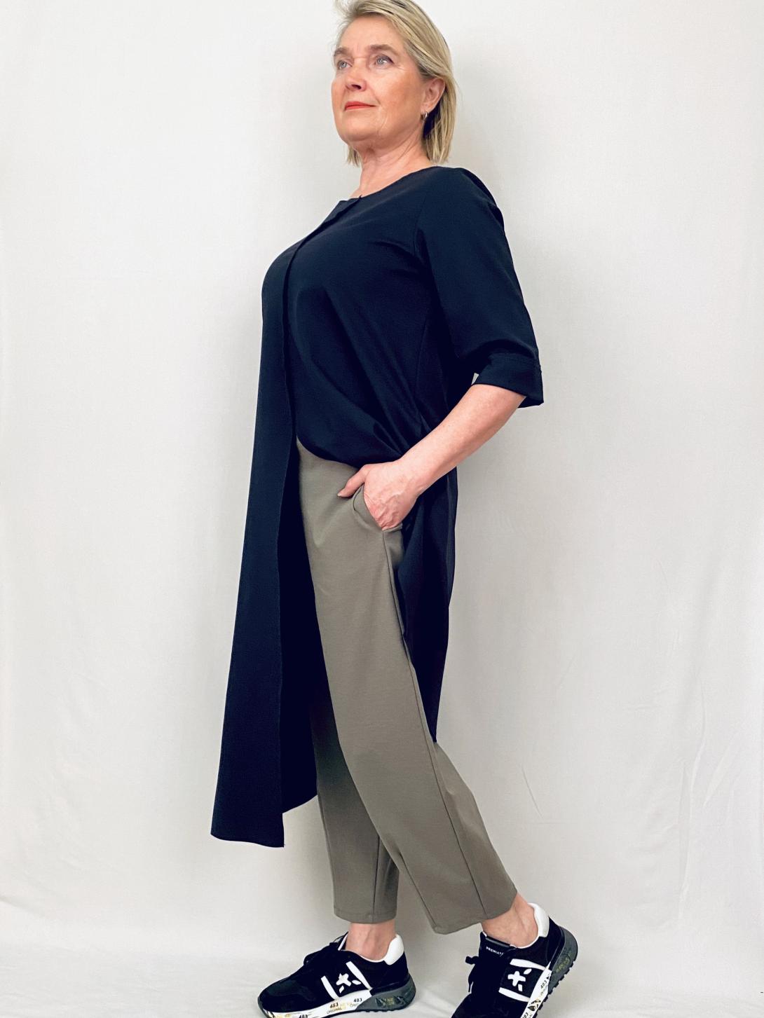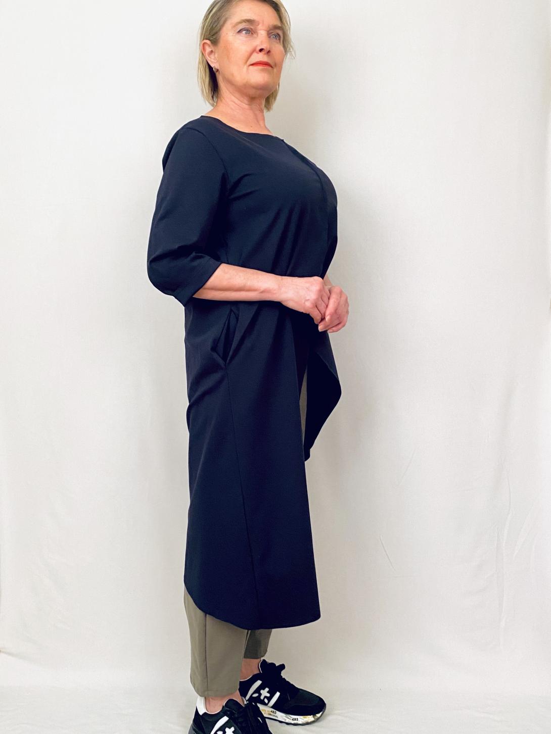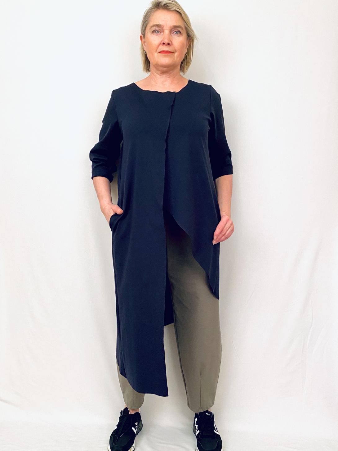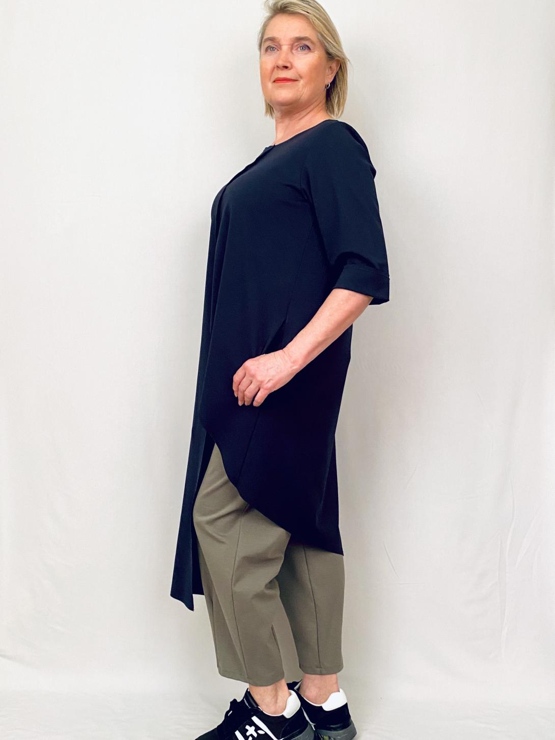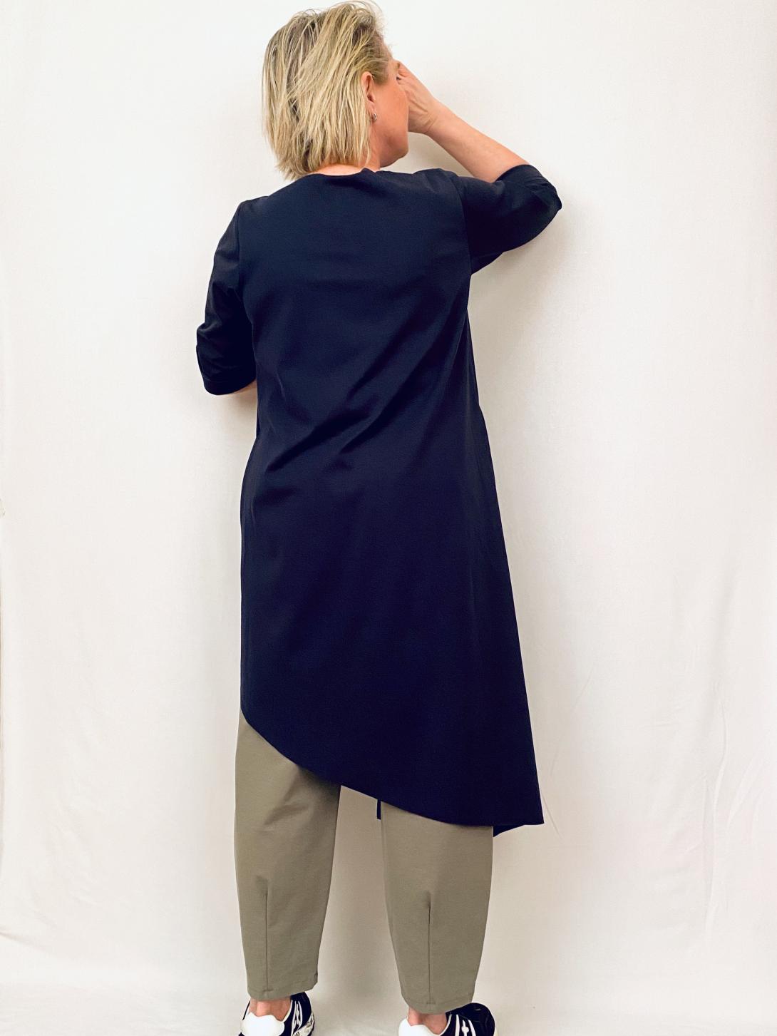 Туника выполнена в тёмно-синем цвете, который добавит яркости и настроения в ваш повседневный образ.