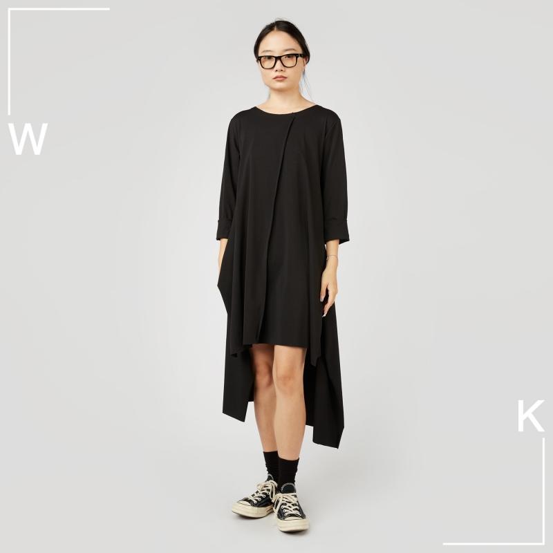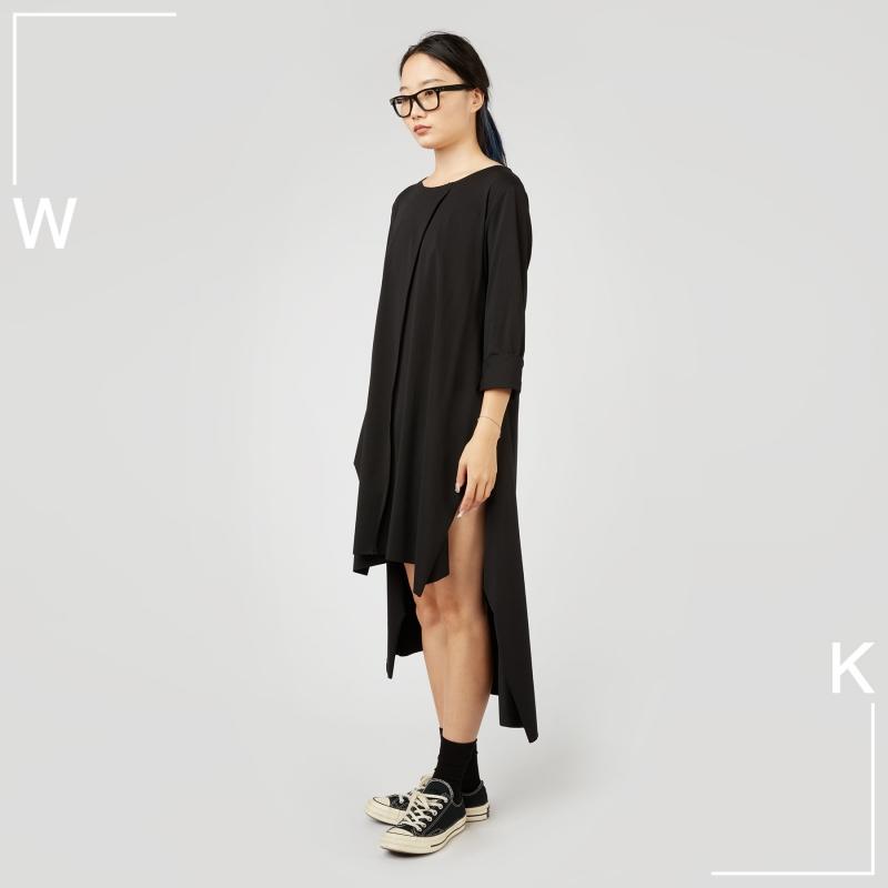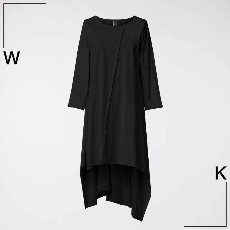 Чёрная ассиметричная туника с разрезами и разной длинной.