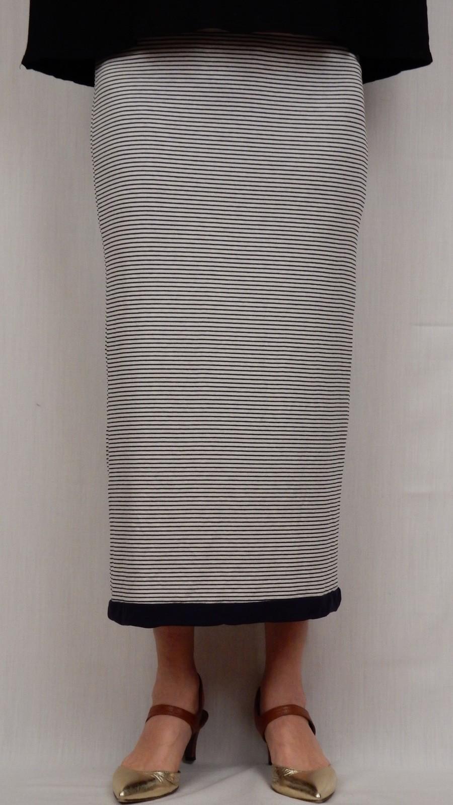 Трикотажная юбка прямая в мелкую полоску ниже колена на приятной тонкой трикотажной подкладке.Длинная юбка пр-во Италия.
