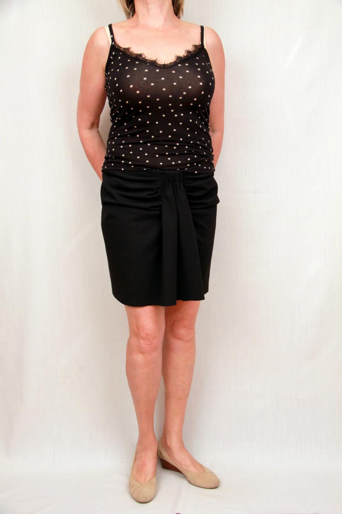 Чёрная юбка оригинального кроя от Ит.бренда Кинг Конг. Юбка выше колена подойдёт для работы в офисе если комплектуем с блузкой или классическим трикотажем.