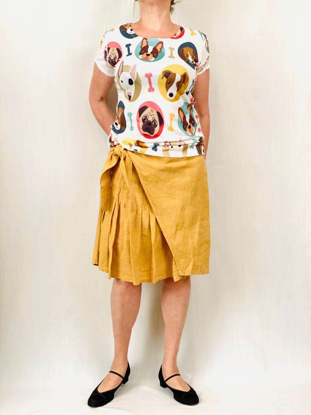 Запашная юбка из льна. Юбка имеет складки спереди, которые подчёркивают кокетливость обладательницы этой юбки.