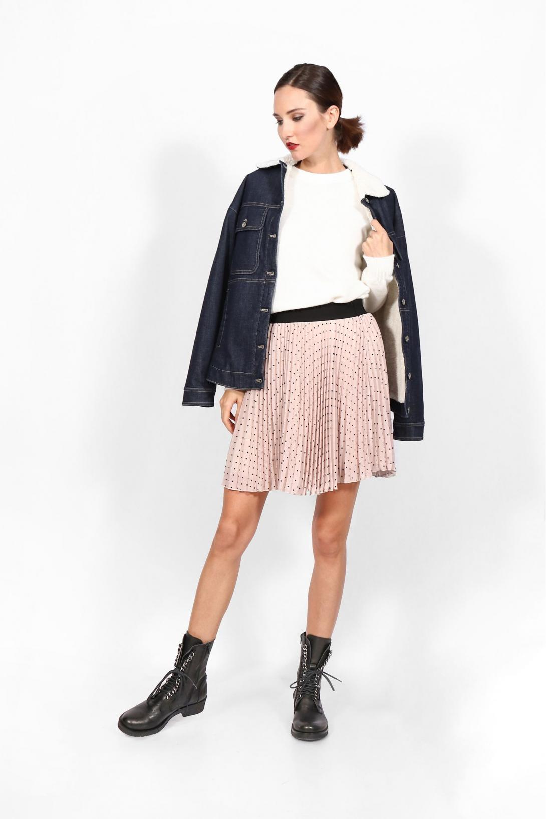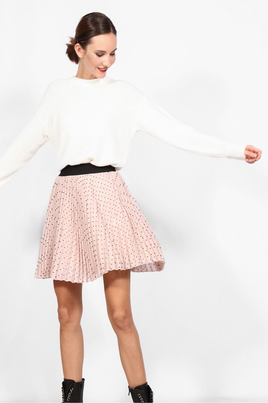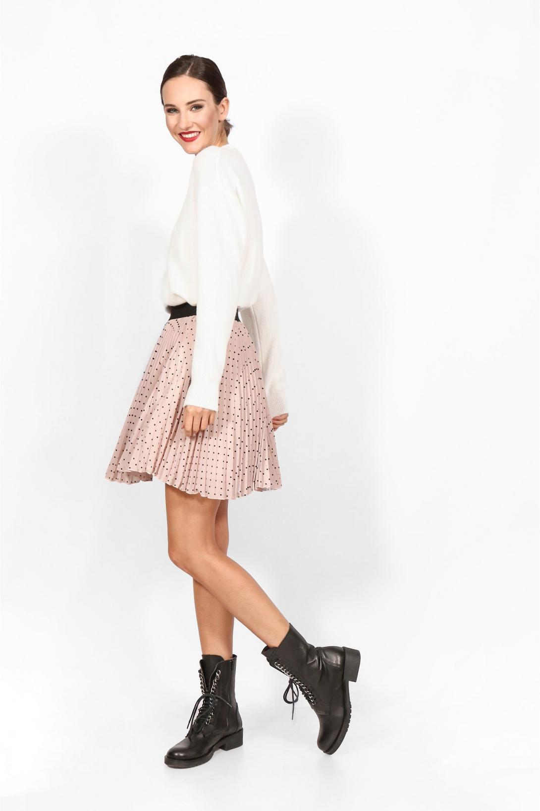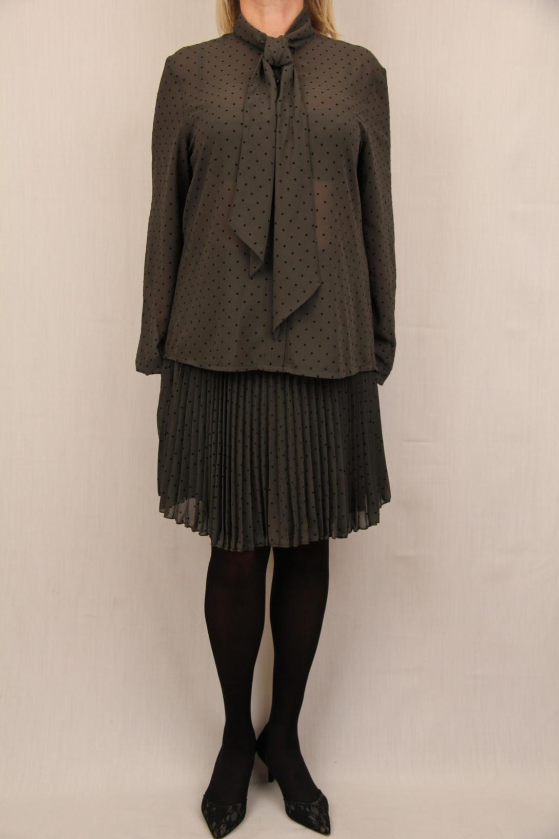Юбка плиссе на широком резиновом поясе. Юбка выше колена ,комплектуется с блузкой аналогичного цвета или с жакетом.