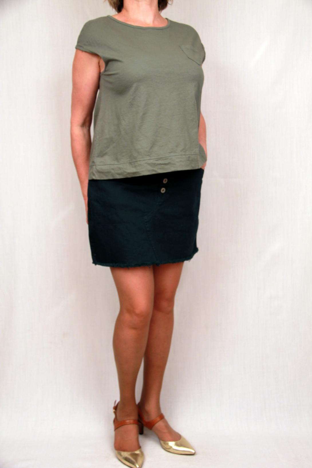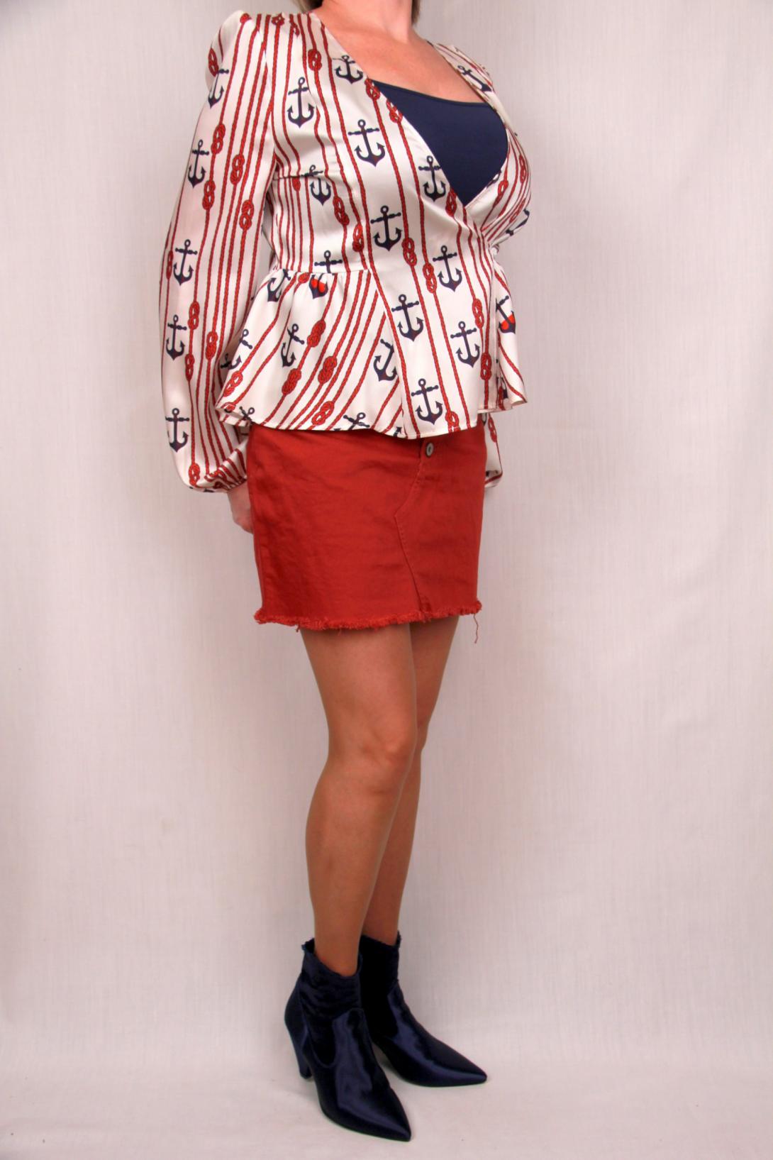 Короткая джинсовая итальянская юбка из новой коллекции. Такая игривая юбка необходима для лета особенно в сочетании с блузкой морской тематики.