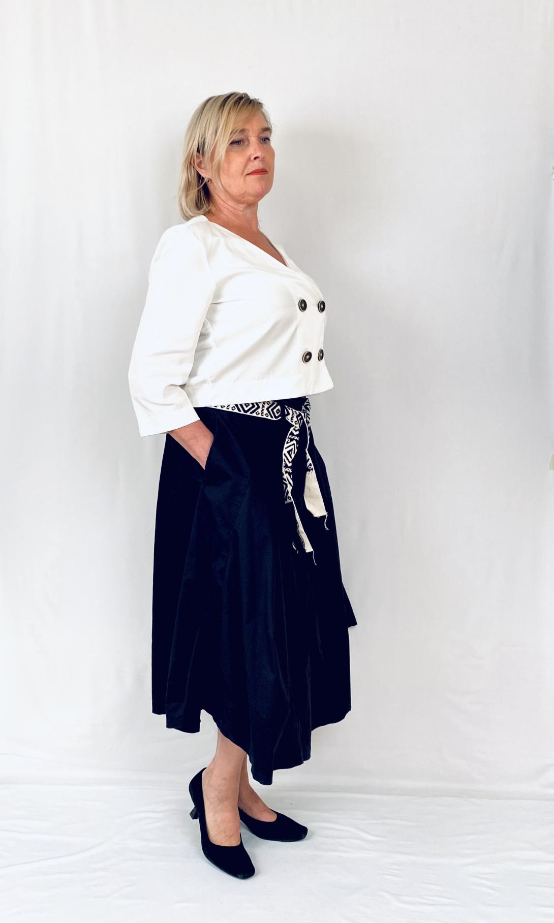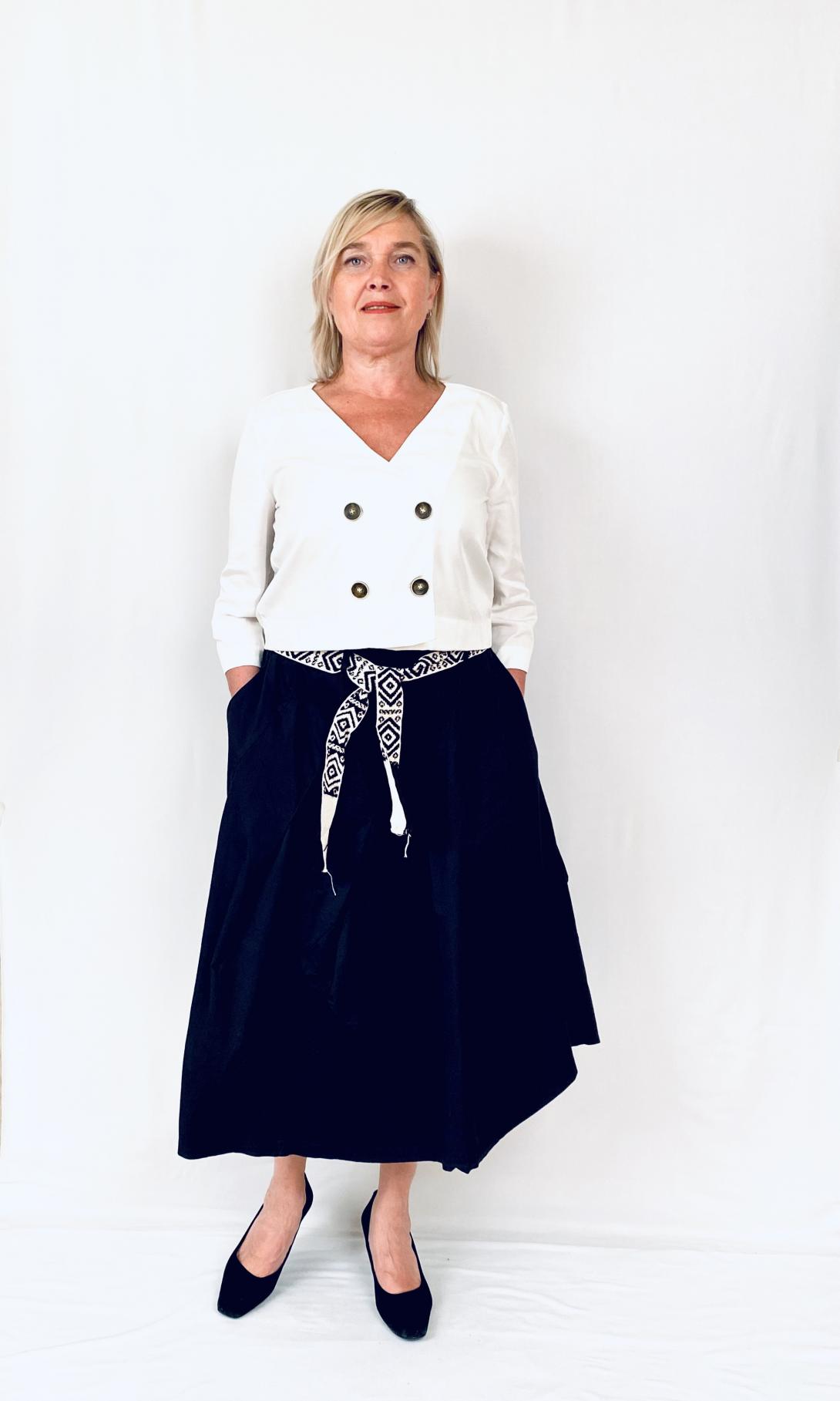 Оригинальный крой юбки из плотной ткани .Пояс на резинке.Тканевый ремешок.Очень креативная модель миди. В такой юбке Вы будете выглядеть достойно.
